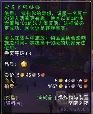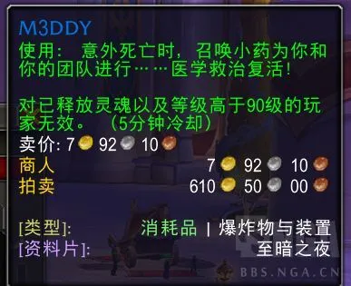 还有一个死亡后群活的道具也放在这里讲好了,这个是给团本使用的,不能用来战复。团灭了之后他可以把全团复活起来,不用跑尸,如图。